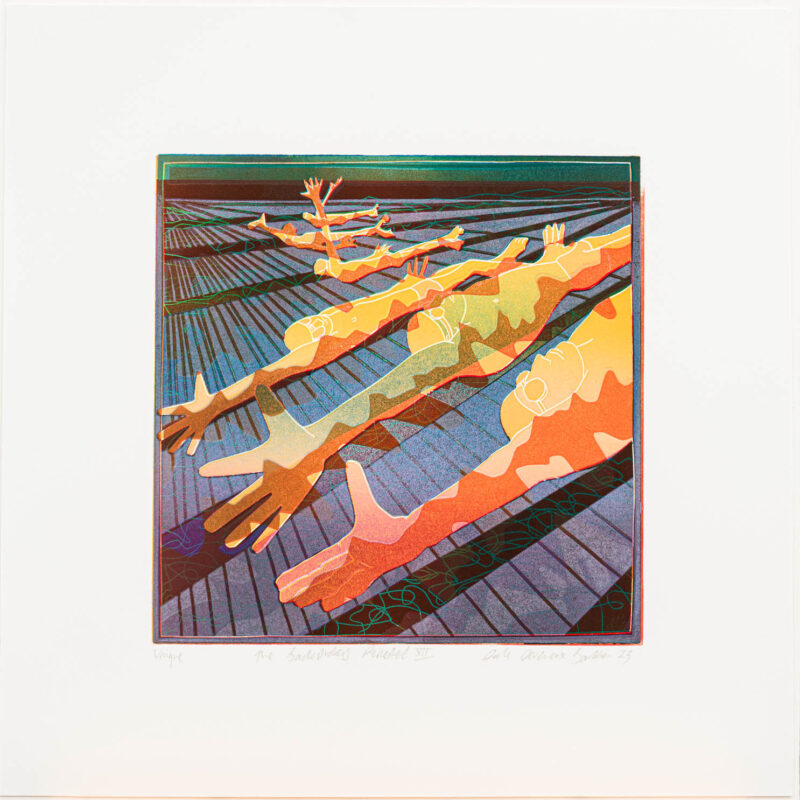 Dale’s loves all things swimming related. A keen competitive swimmer since the age of five, Dale began celebrating this activity in his art during a residency at a swimming pool in 1989. To date, he has made around 150 different images celebrating this personal history.