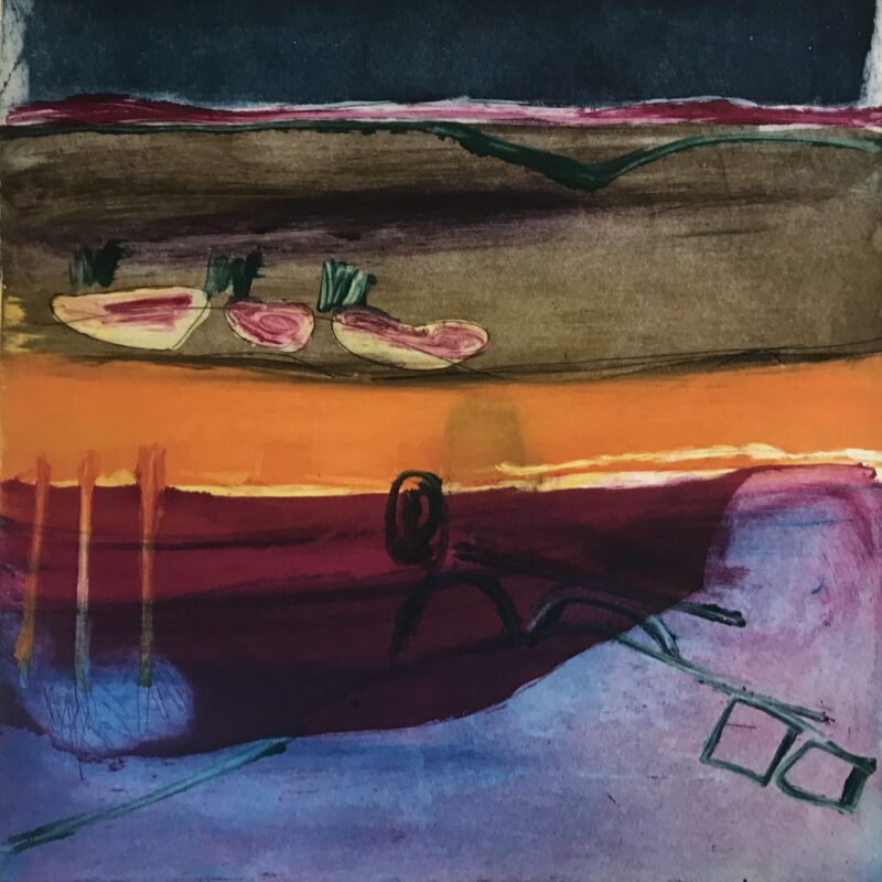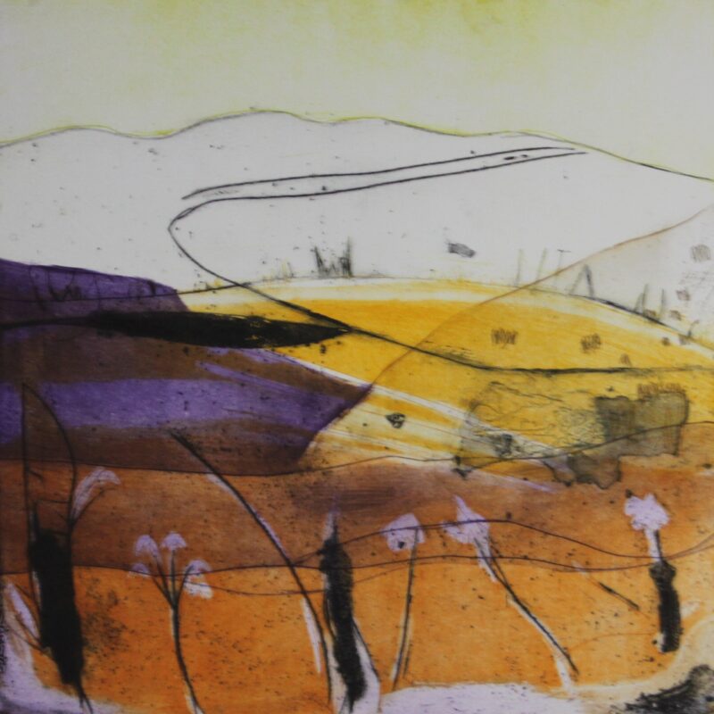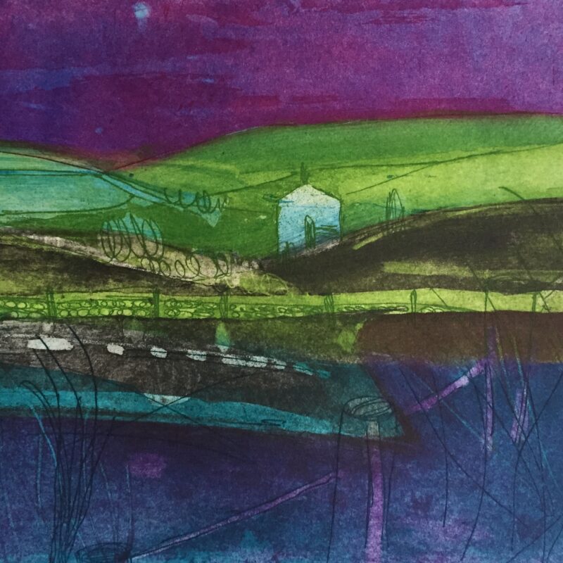 Her Prints are primarily concerned with the landscape. Some are based on childhood memories, reflecting on the countryside and coast of the west of England. However some of the Prints are evolved from small paintings and drawings done on location from sketch books. She has a strong use of colour combined with an individual and sensitive line drawing which she uses to create a visual language for her Prints and Paintings. Louise uses layers of translucent colour and calligraphic marks to emphasis the fluidity of the ever changing elements of nature.